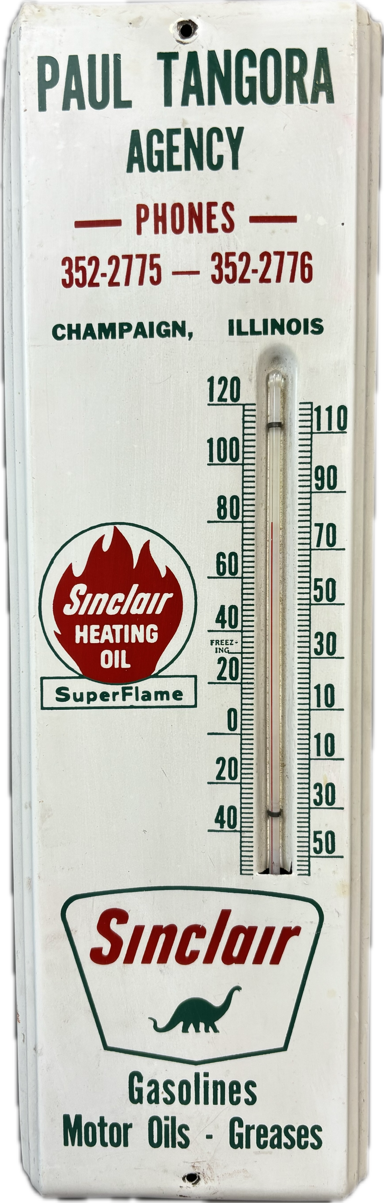 Sinclair Gasolines Motor Oils Greases Paul Tangora Illinois Thermometer