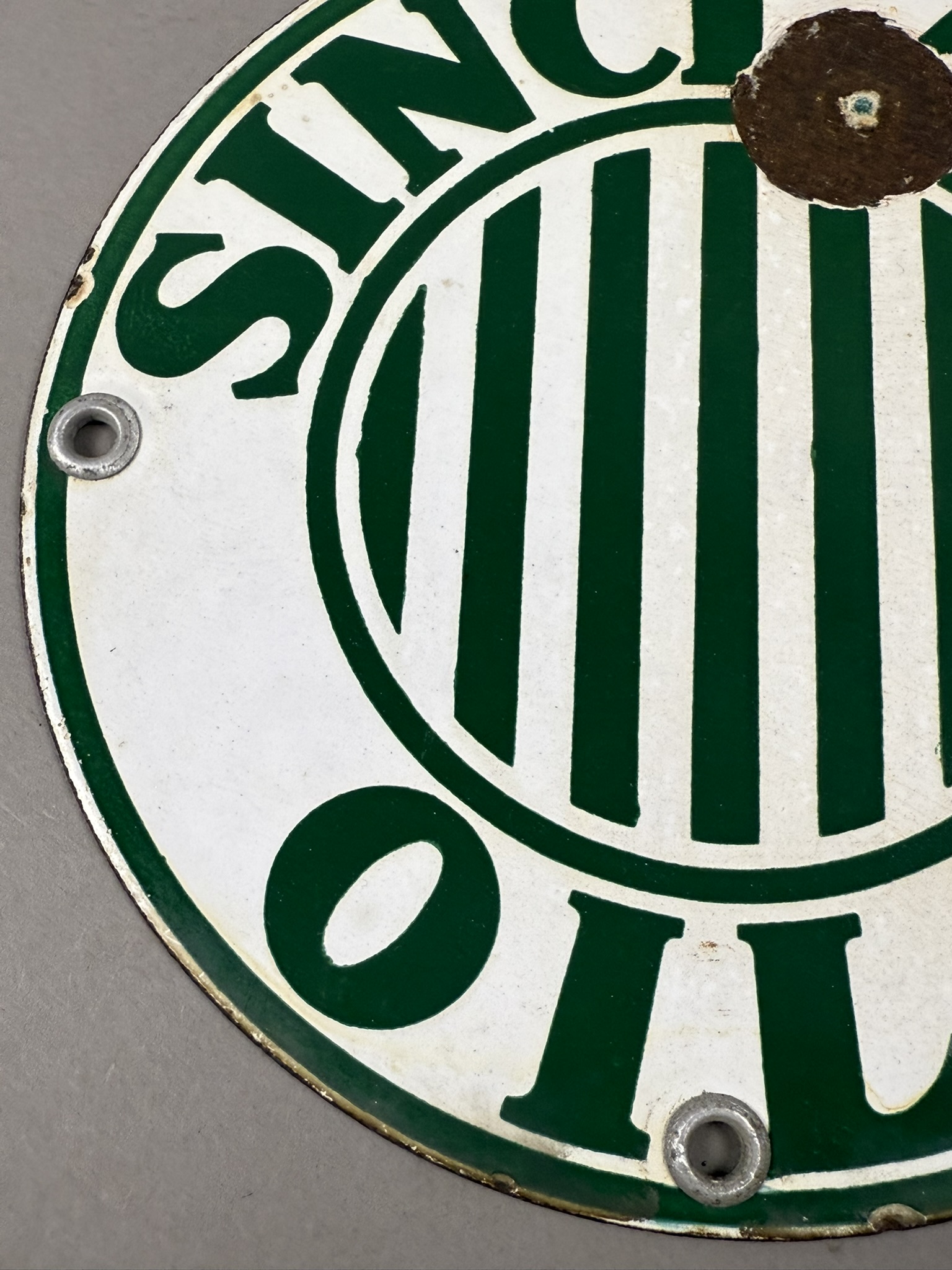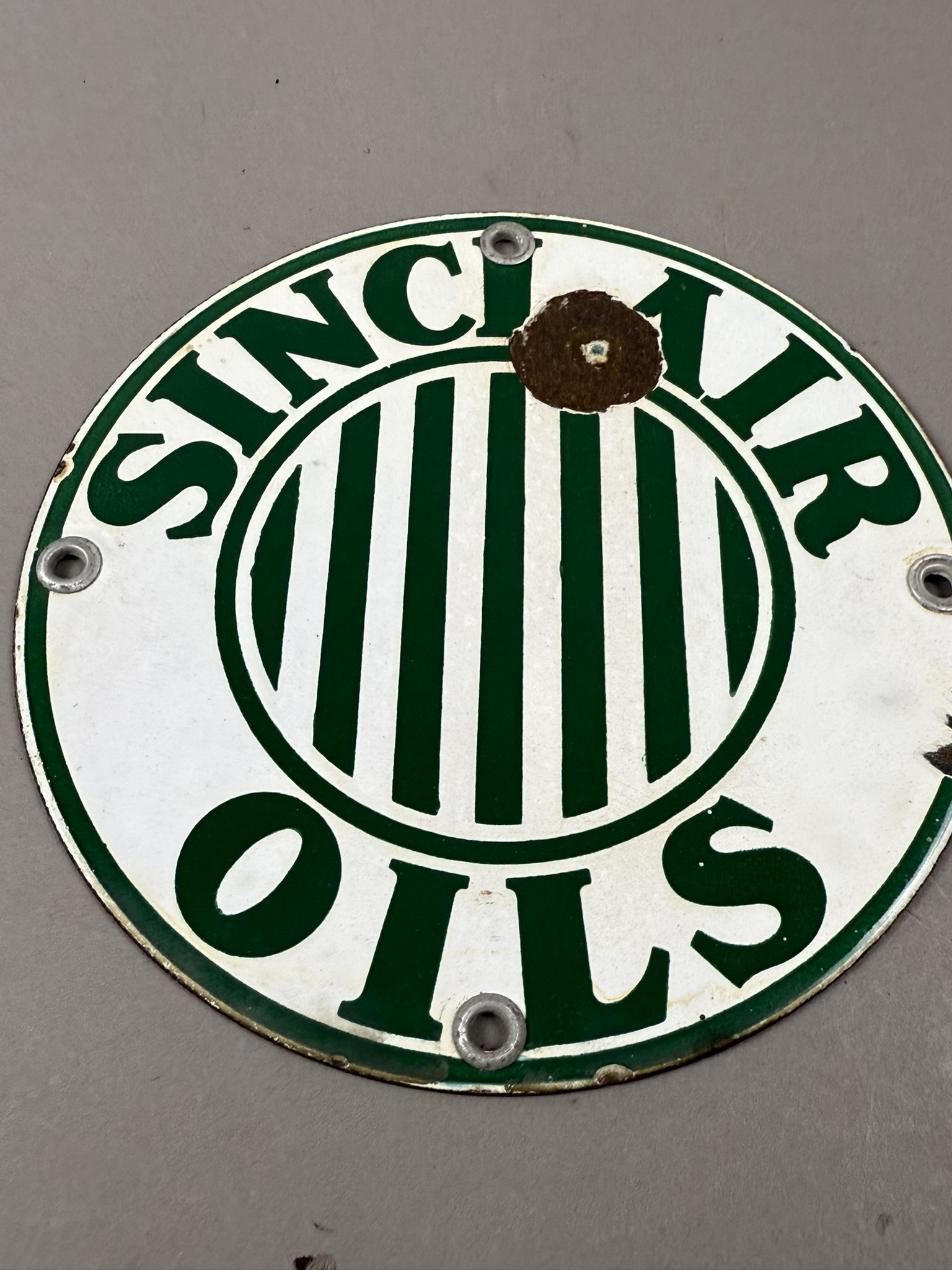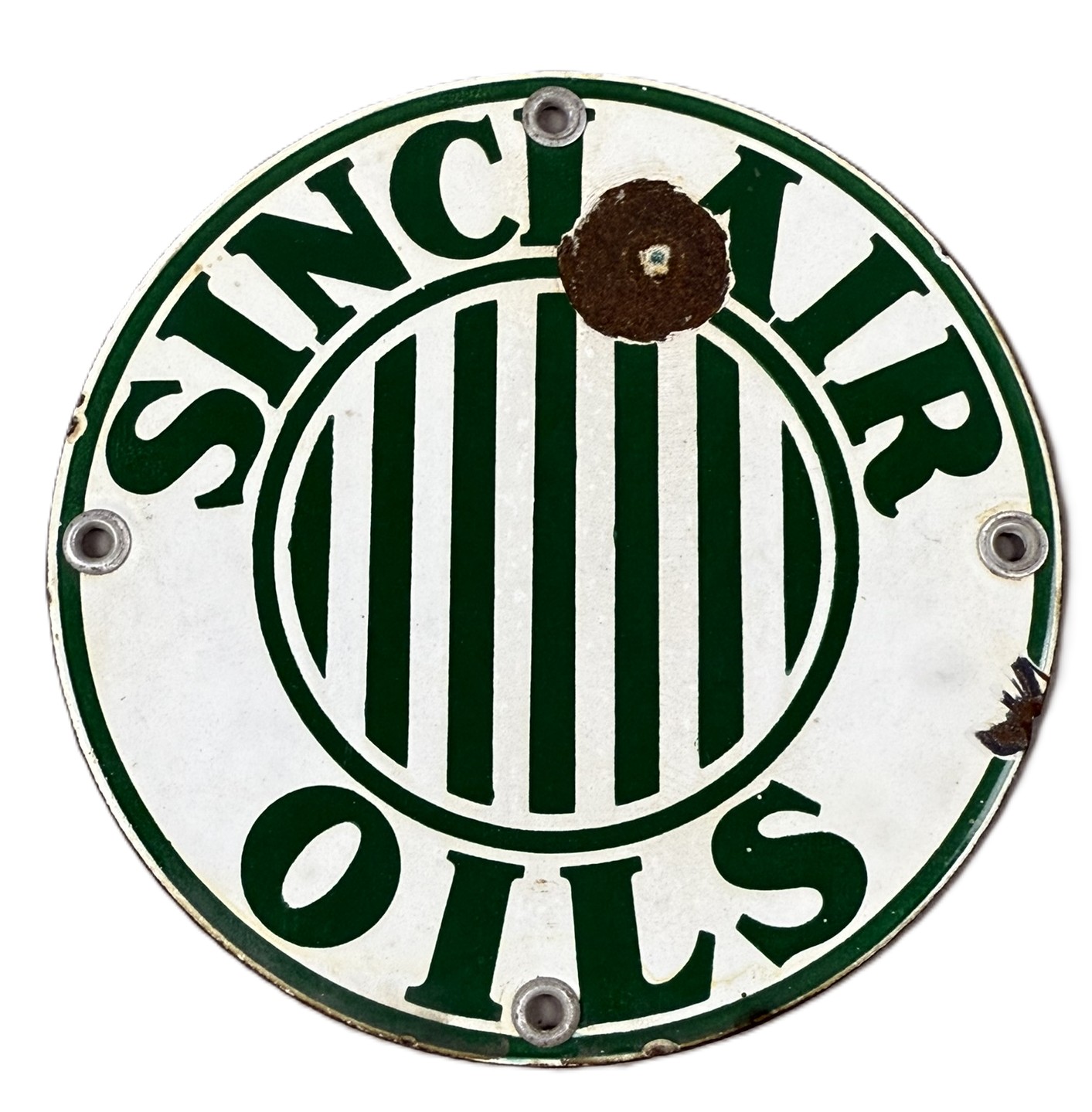 Exceedingly scarce and hard to find original SSP 6″ Sinclair Oils with Jail Bars rack sign. Wear as shown. Tac certified #006259