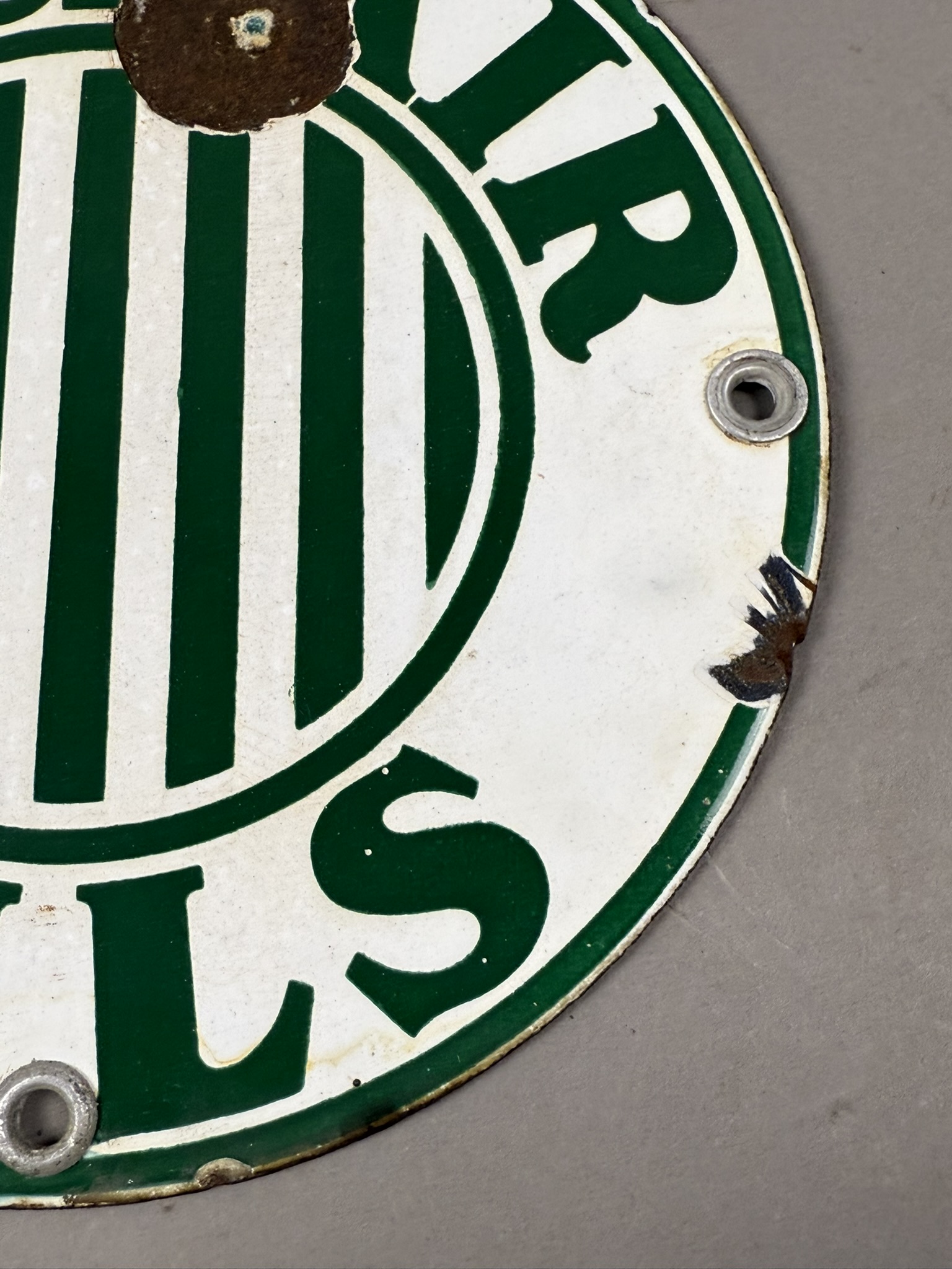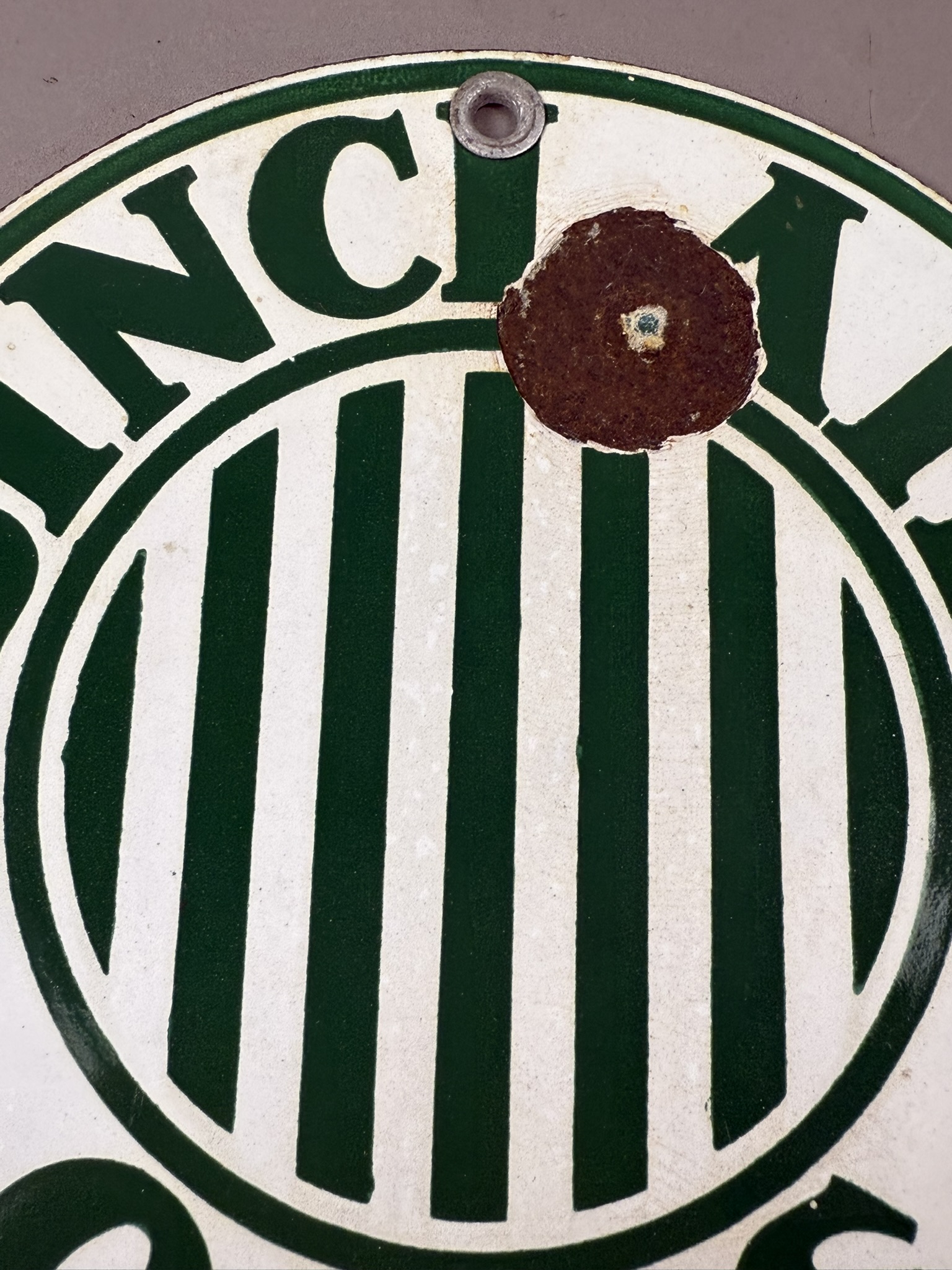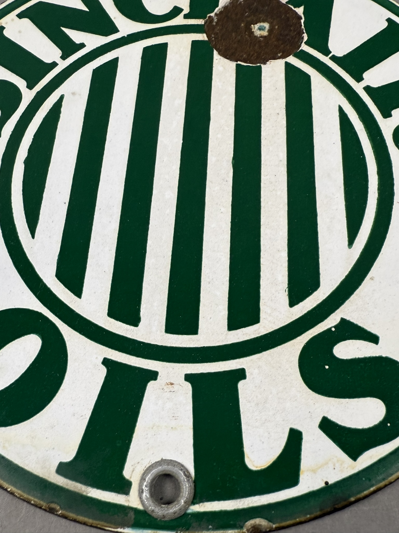 Exceedingly scarce and hard to find original SSP 6″ Sinclair Oils with Jail Bars rack sign. Wear as shown. Tac certified #006259