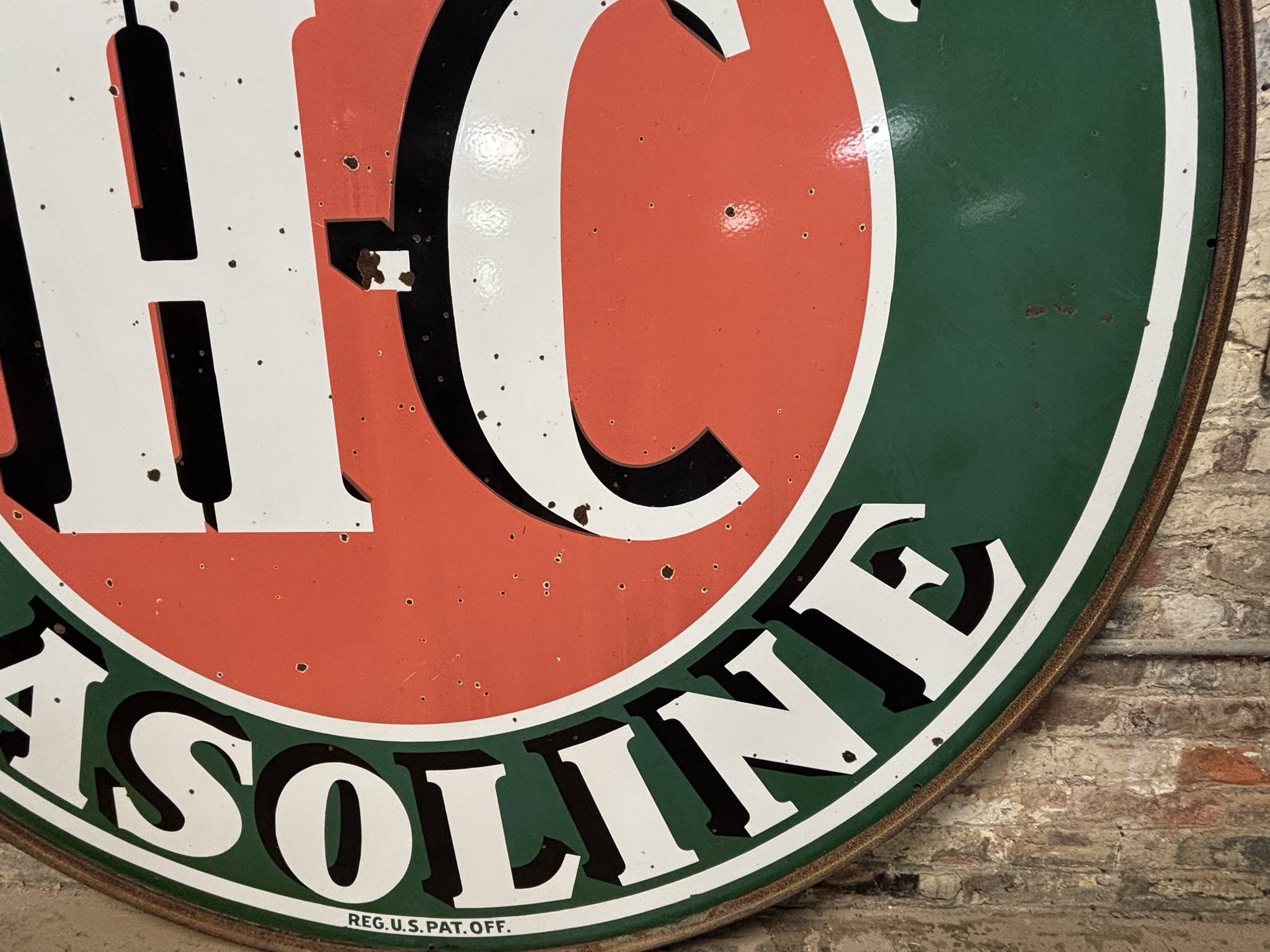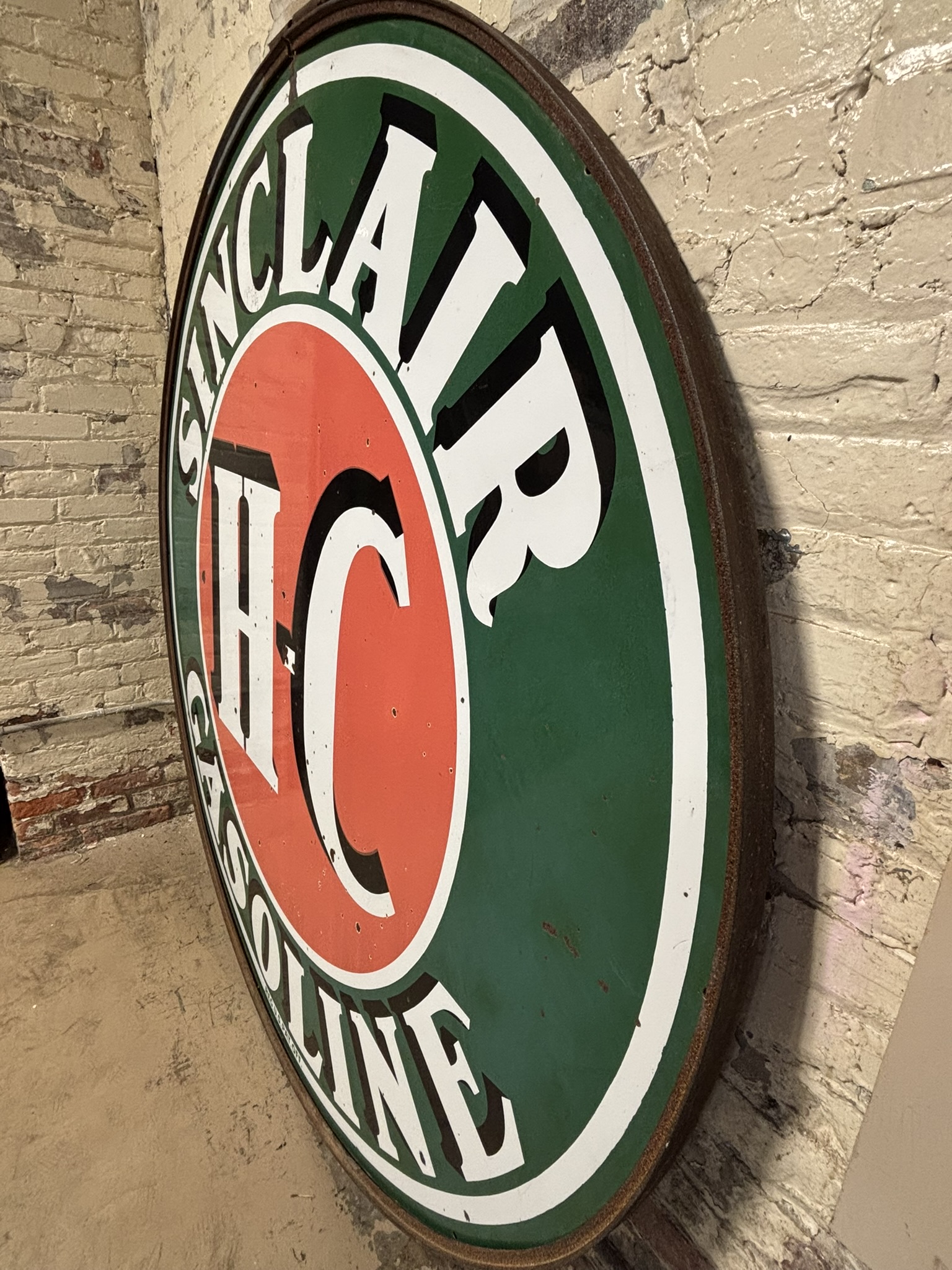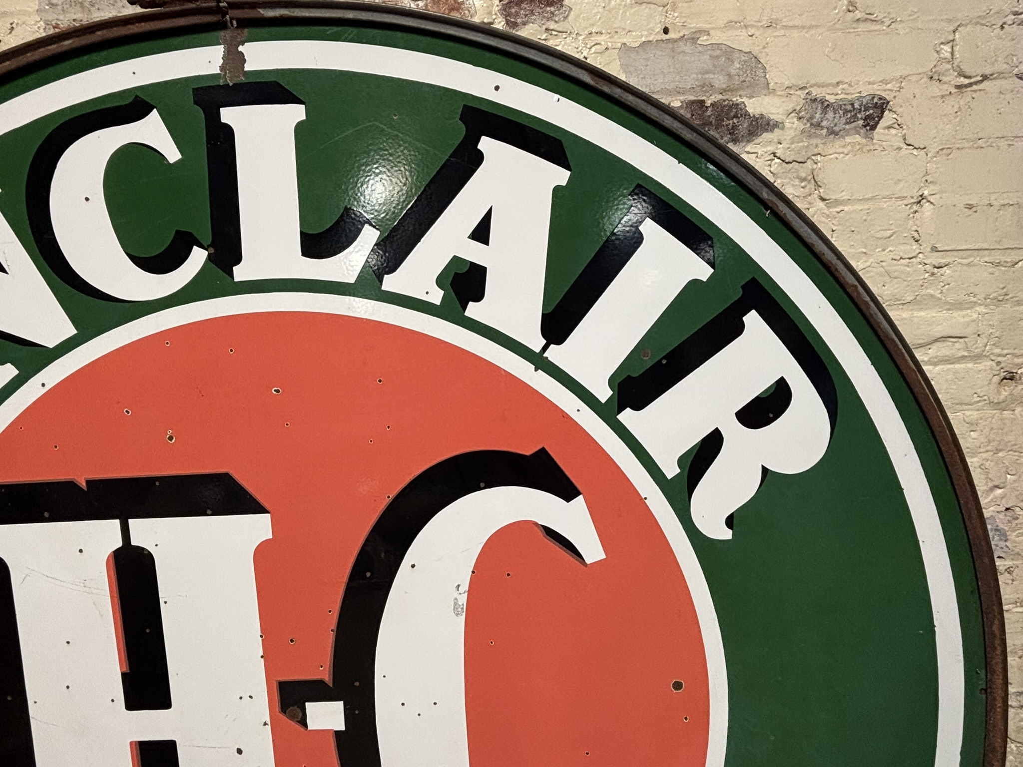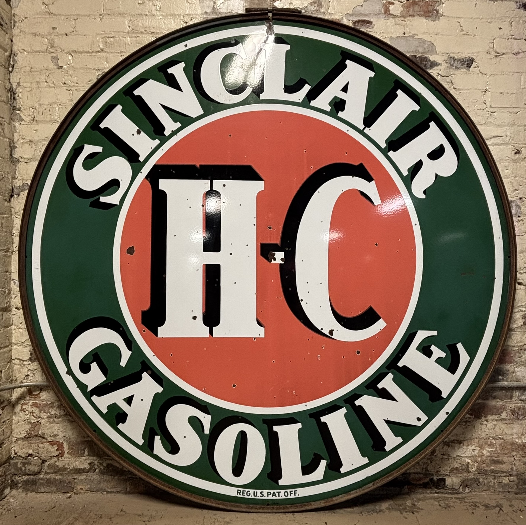 Sinclair H-C Gasoline 6' DSP Porcelain Gas Station Sign w/ Ring