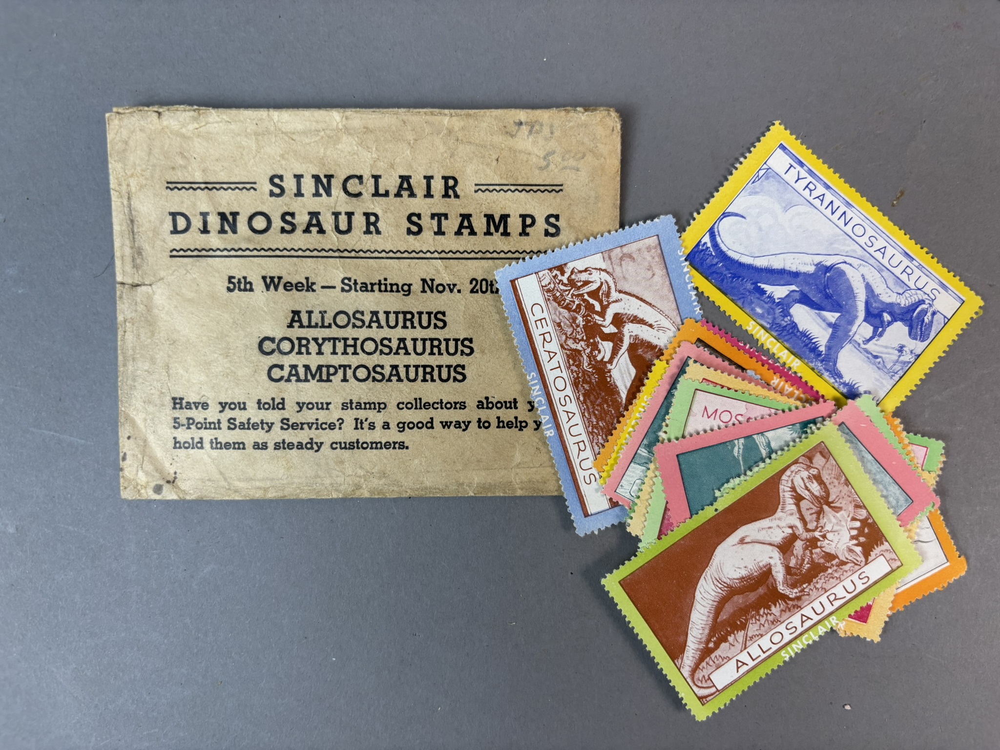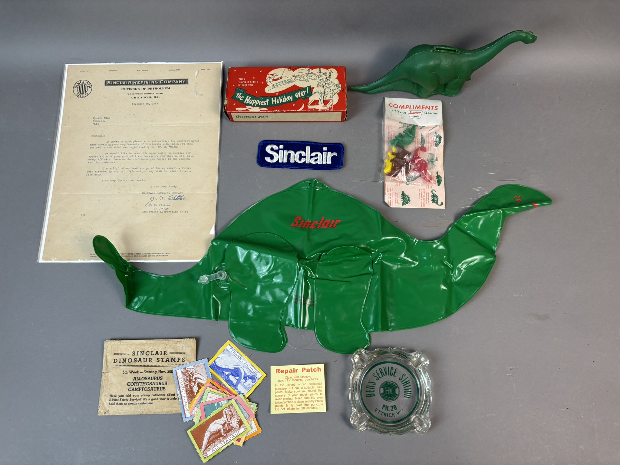 Lot 17 Original Dino Sinclair Gas Station Items Ashtray Patch Stamps & More