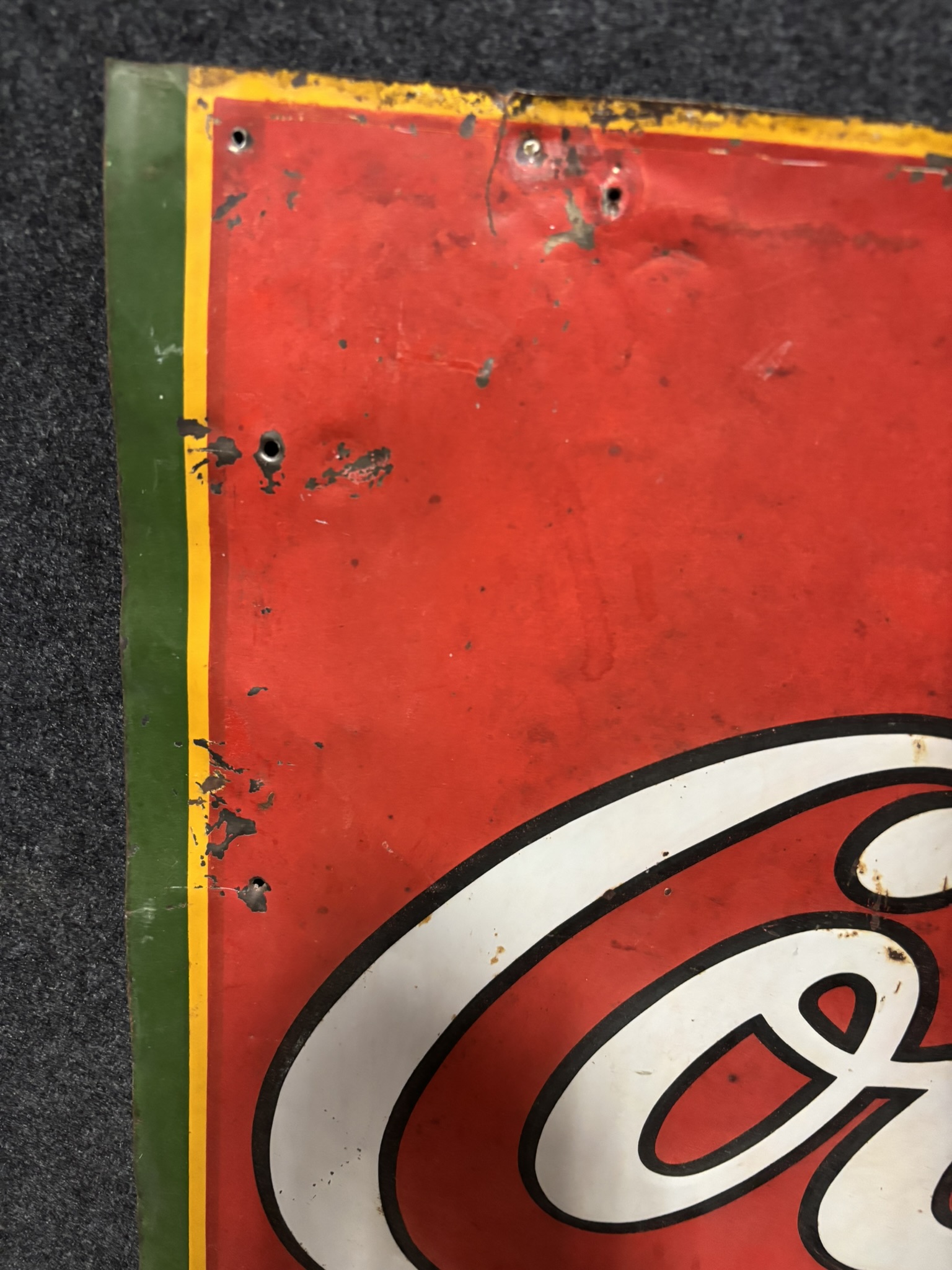 54″ x 27.5″ – cut as shown – great original sign regardless!