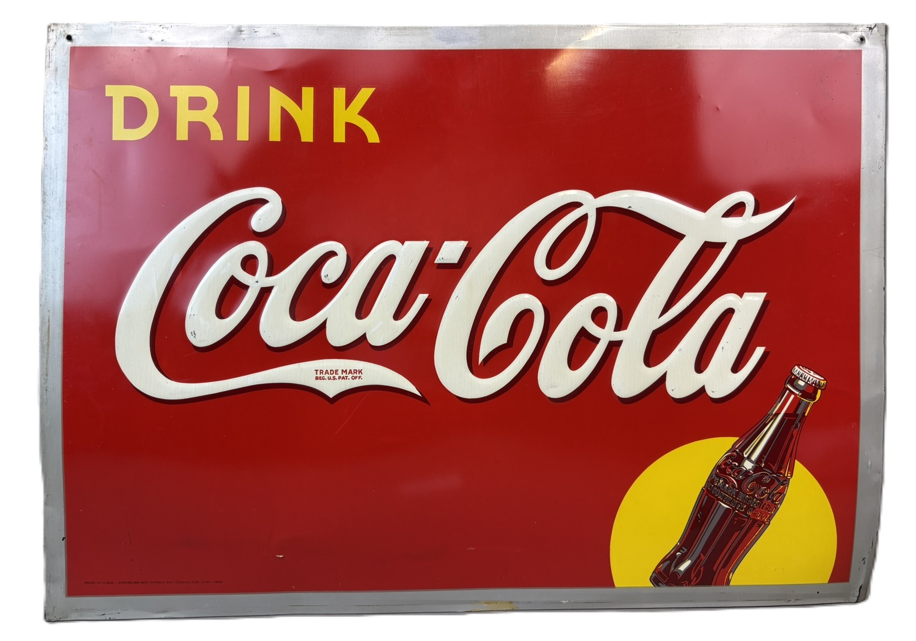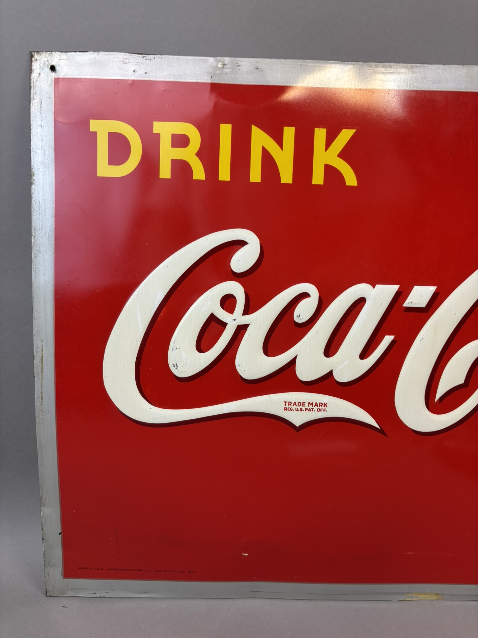 Drink Coca Cola SST Tin Embossed Metal 1940 Soda Pop Sign