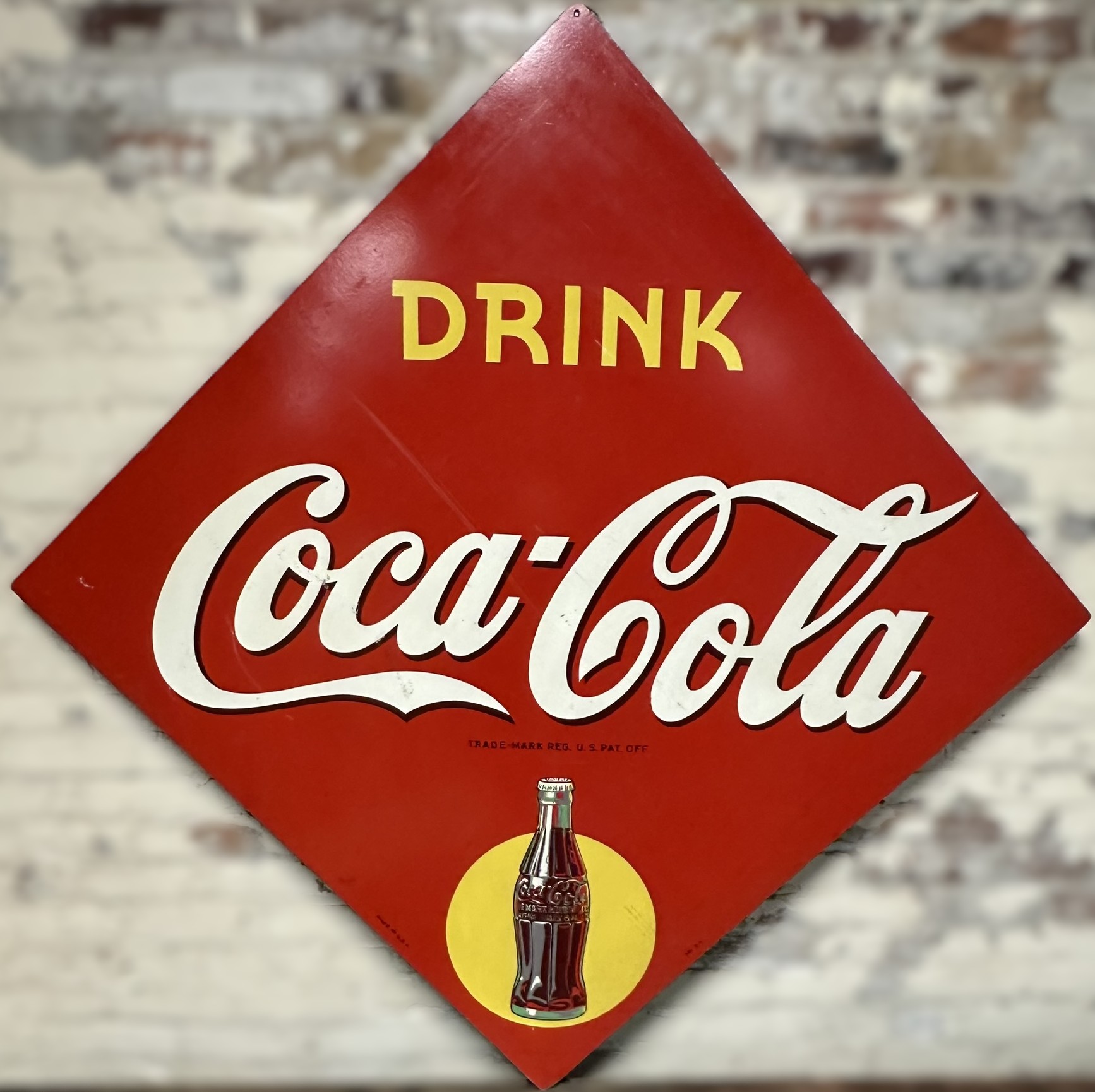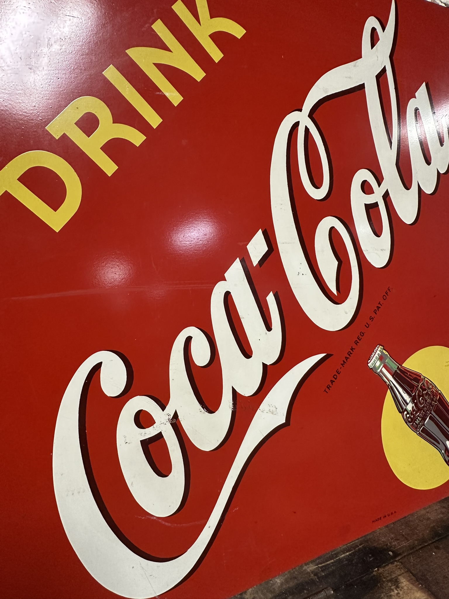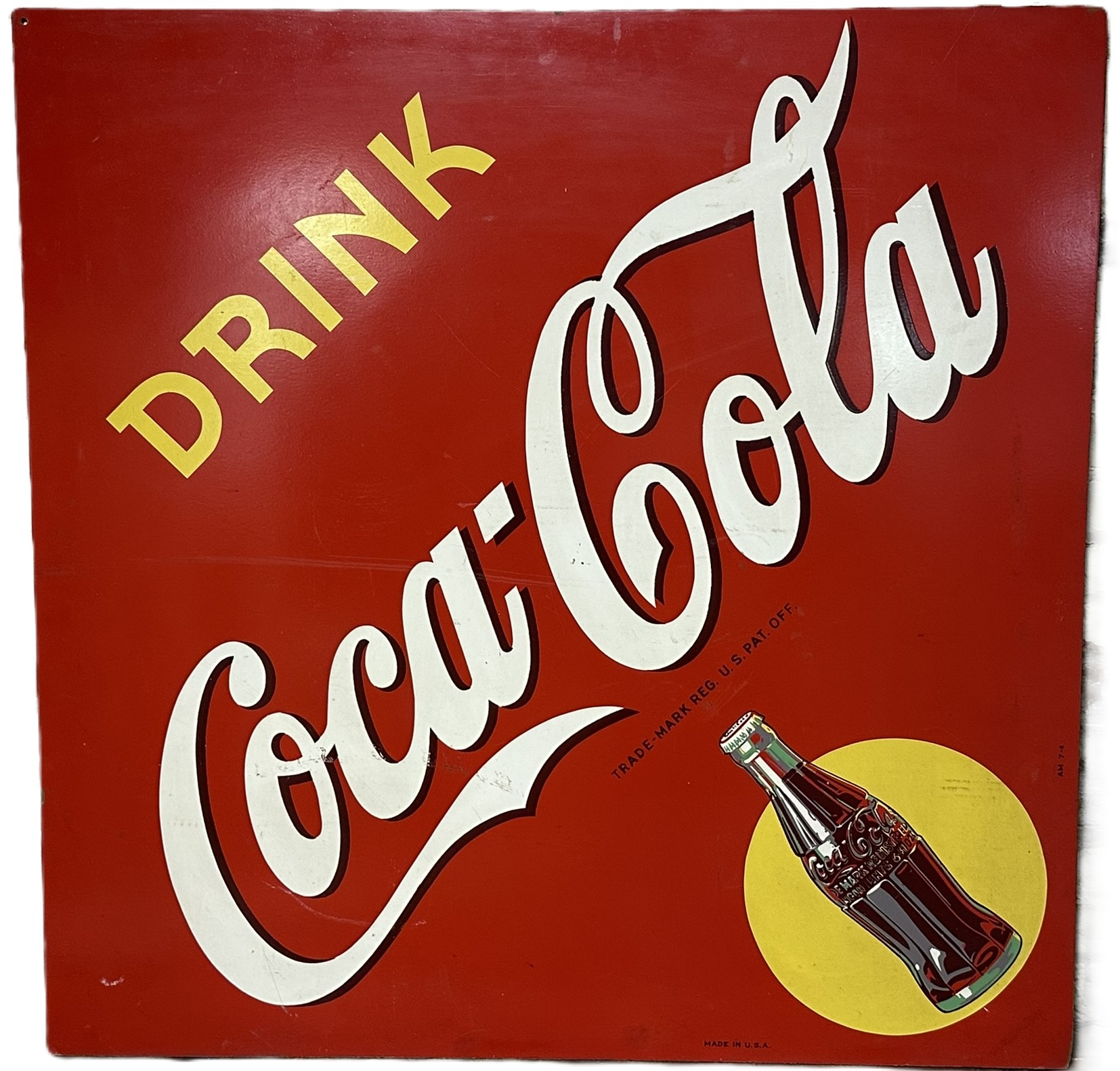 Measures 42.5″ x 42.5″ – excellent original coke sign with the AM 7-4