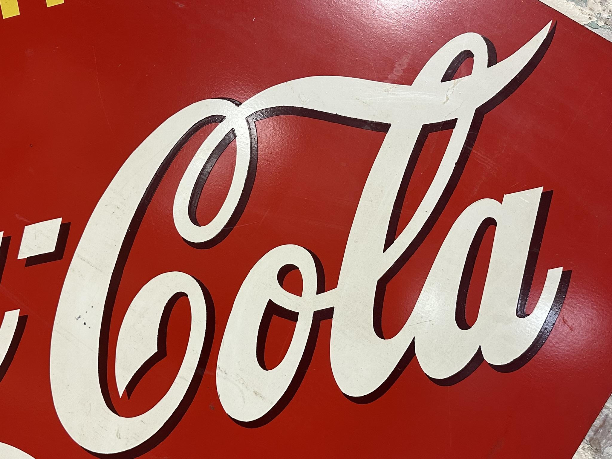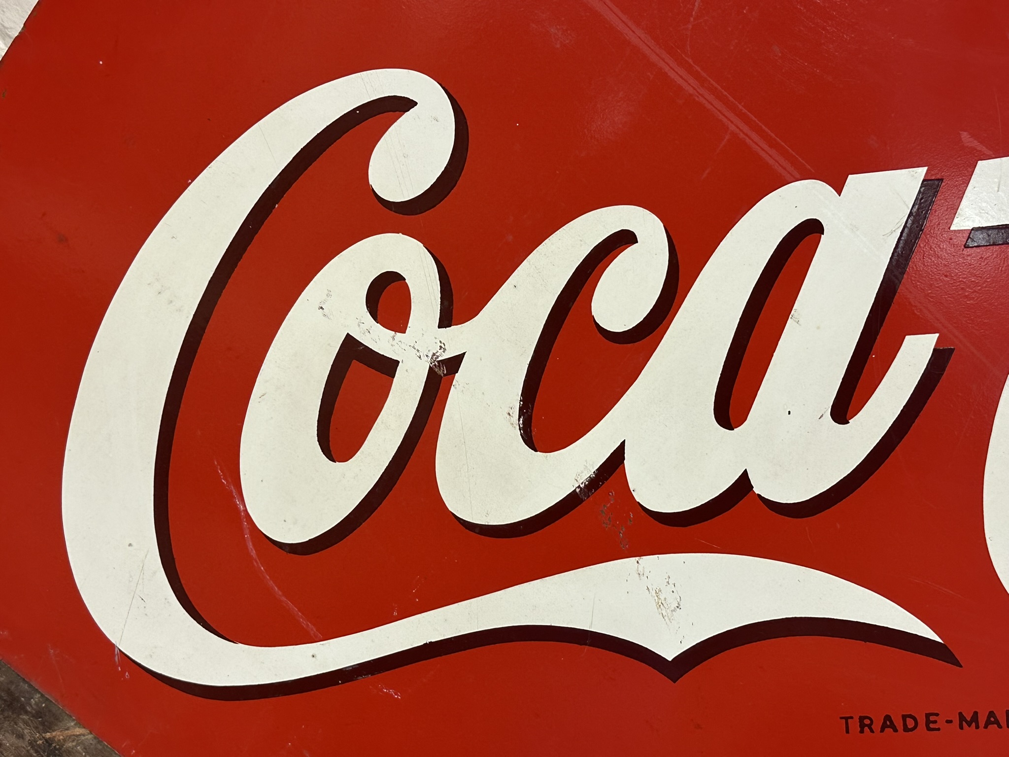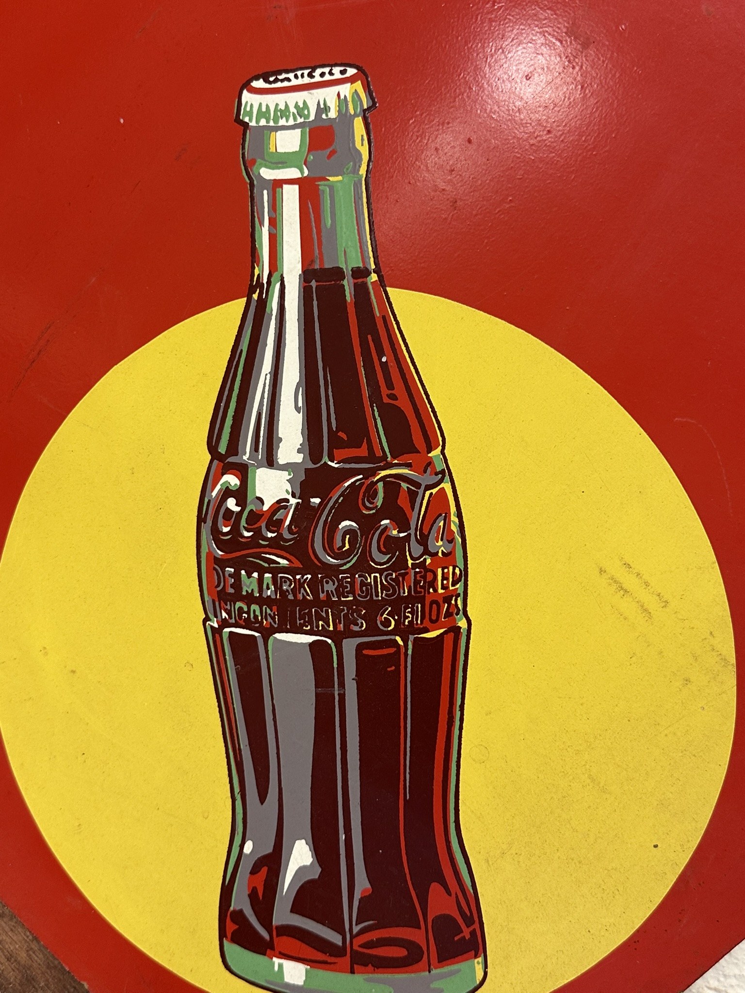 Measures 42.5″ x 42.5″ – excellent original coke sign with the AM 7-4