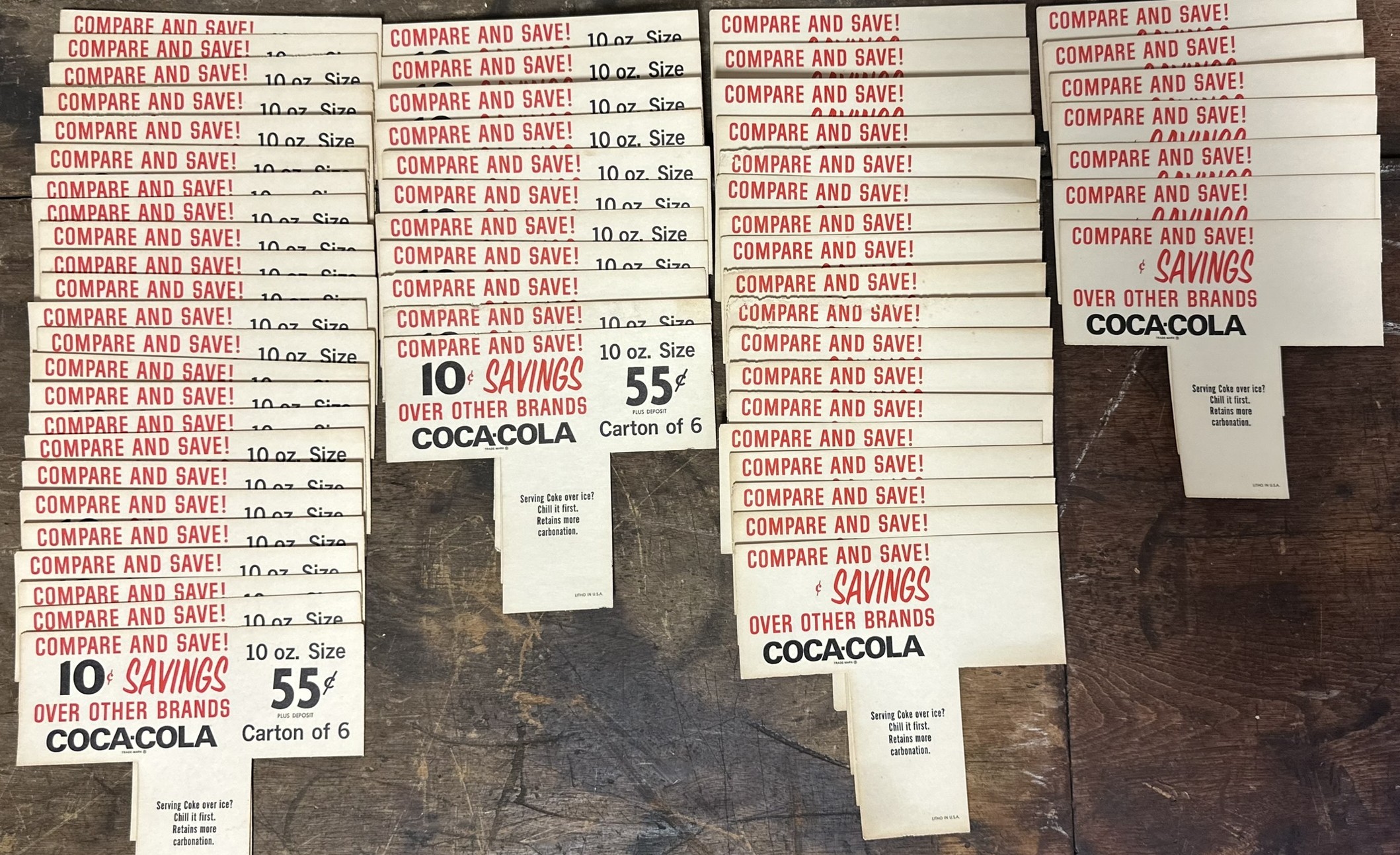 Lot 60 Coca Cola 55 Cent Pricer Cardstock Advertising Bottle Signs